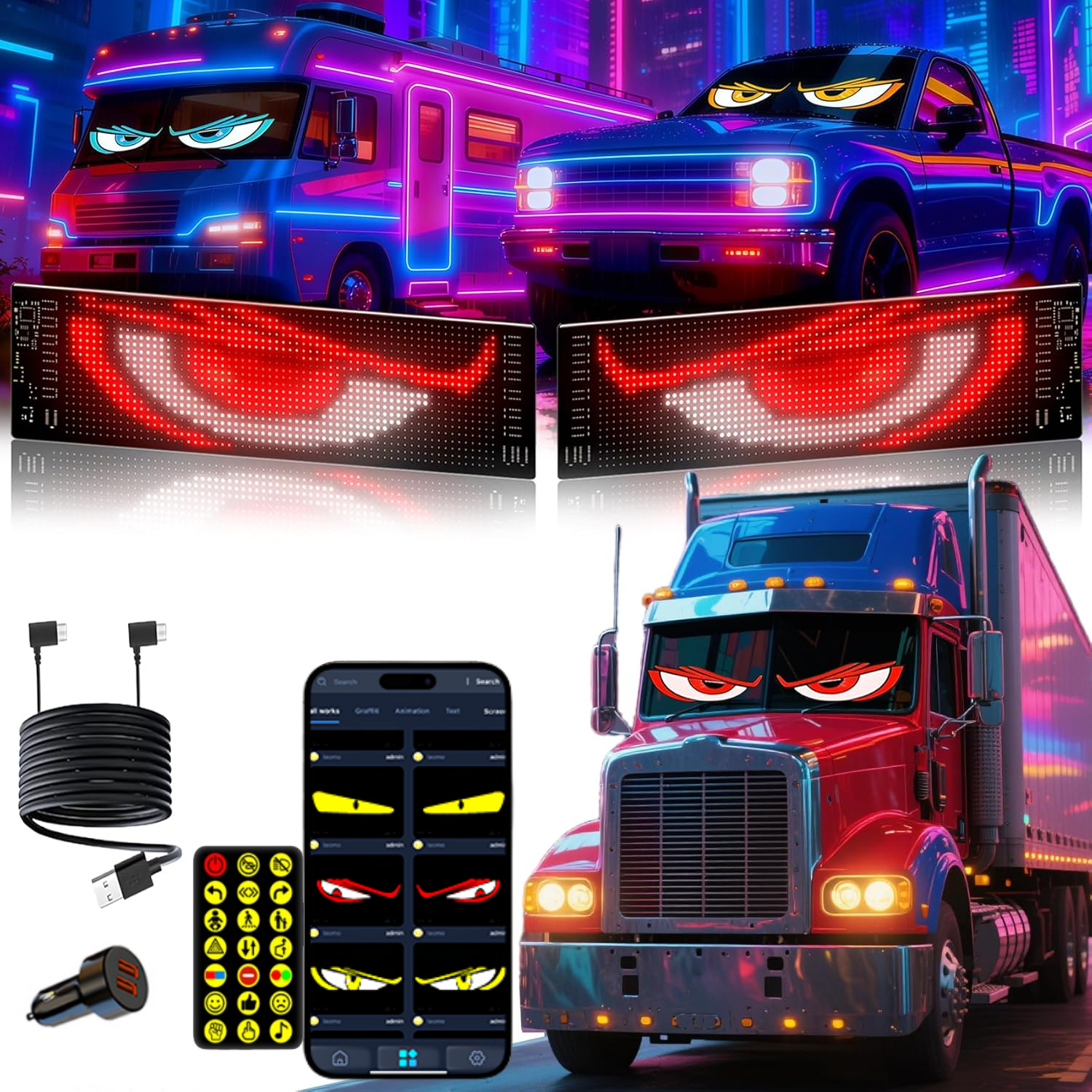 Flexible RGB Led Display Screen Programmable Truck Devil's Eye Led Sign Dynamic Demon Eyes Lights Car Scrolling Led Car Sign